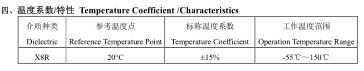 X8R:此類介質(zhì)材料的電容器為Ⅱ類電容器,具有較高的介電常數(shù),具有高達(dá)150℃的上限使用溫度和穩(wěn)定的溫度特性,可靠性高。