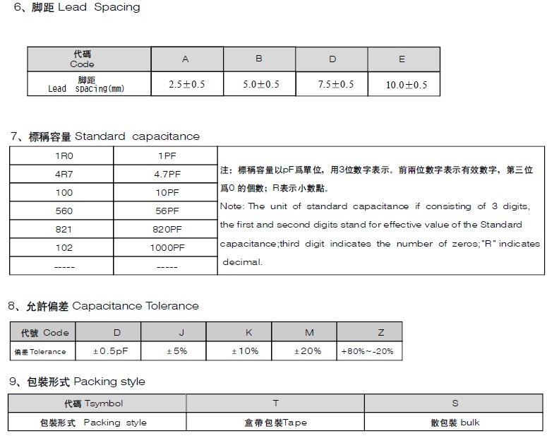 產品說明:尺寸: 7.5mm 額定電壓: 4KV 標準容量: 560pF~1000pF(1nF) 電阻: Y5U 介質材料: 編帶 誤差: ±20%
