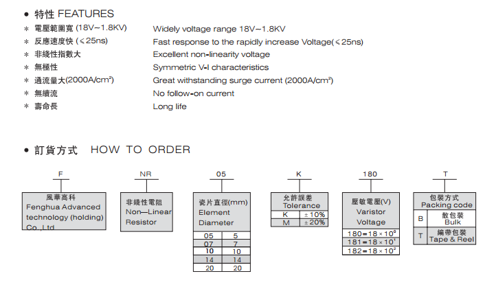 氧化鋅壓敏電阻 FNR-14K系列