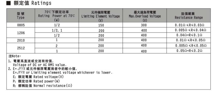 產(chǎn)品說明:尺寸: 2512 電阻: 5mΩ~50mΩ 誤差: ±1% 功率: 2W