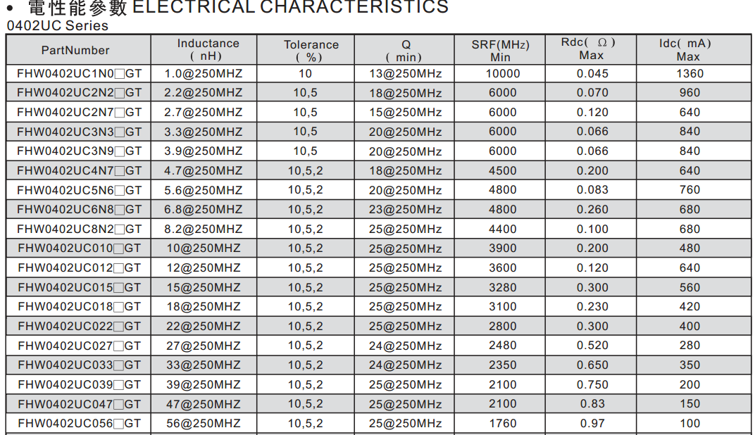 0402繞線型片式陶瓷體電感器