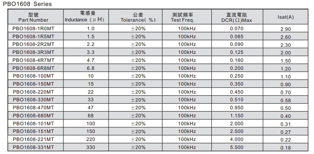 PBO1608-1R0MT功率電感