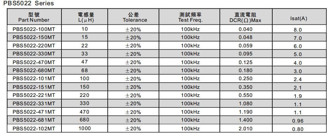 PBS5022-121MT功率電感