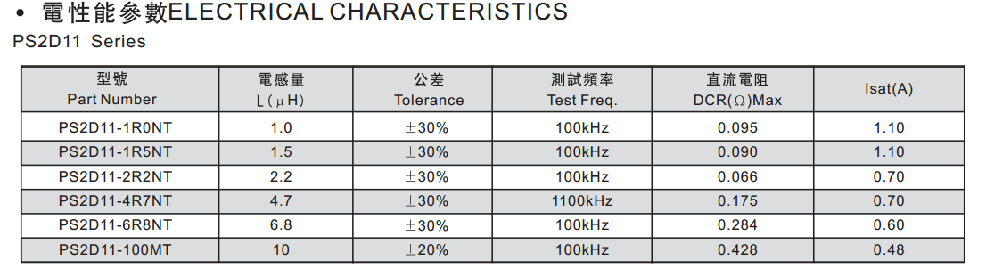 PS2D11-1R0NT功率電感