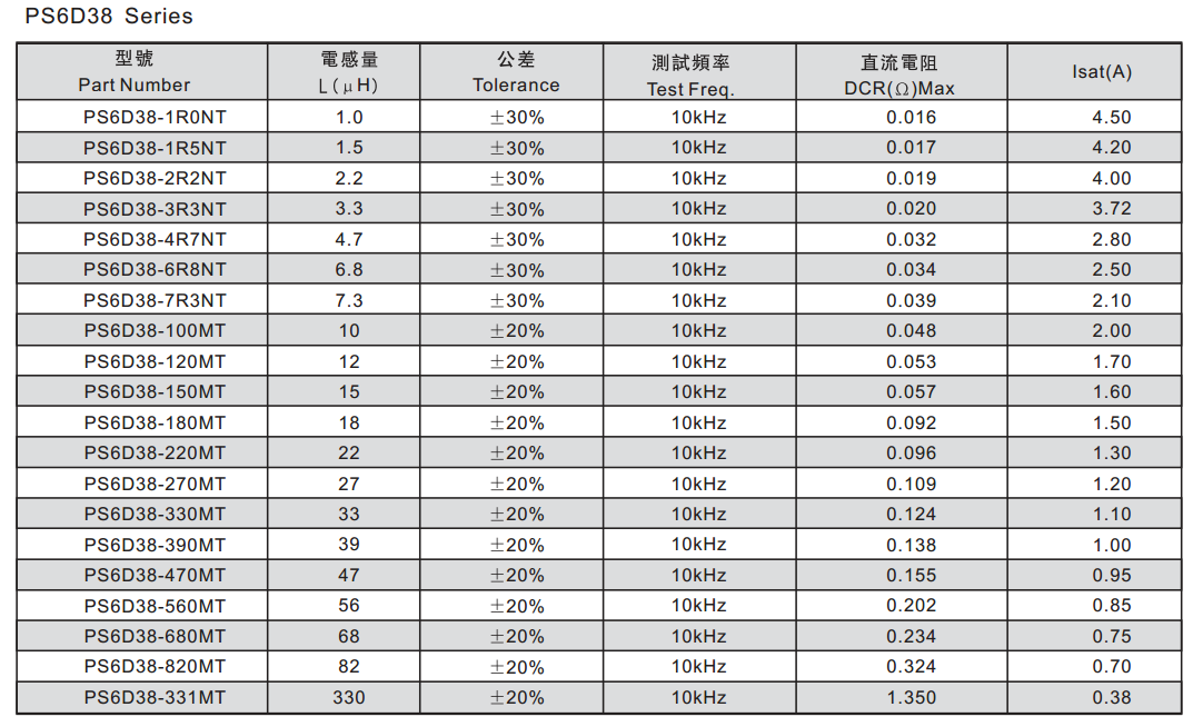 PS6D38-1R0NT功率電感