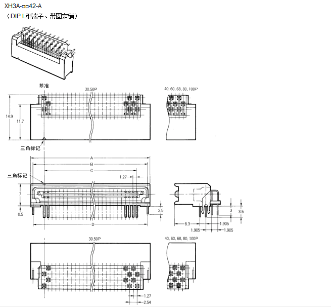 ? 與基板的連接為4列交錯配置(1.27mm x 1.905mm)。