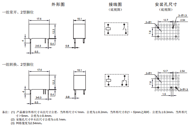 · 具有一組常開、一組轉(zhuǎn)換觸點(diǎn)形式