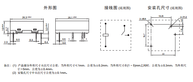 · 外形尺寸:(26.3 x 26.1 x 10.0) mm