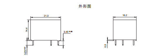 · 外形尺寸:(21.3 x 16.2 x 14.4) mm