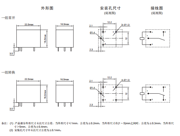 · 具有一組常開、一組轉(zhuǎn)換觸點(diǎn)形式