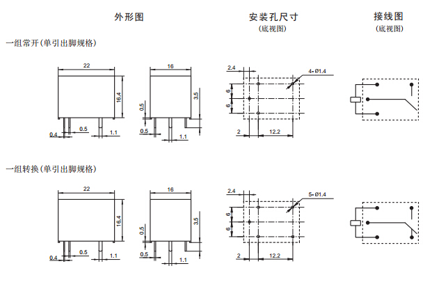 · 具有一組常開、一組轉(zhuǎn)換觸點(diǎn)形式