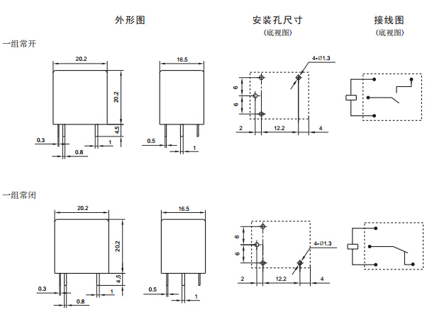 · 具有一組常開、一組常閉(燈載)、