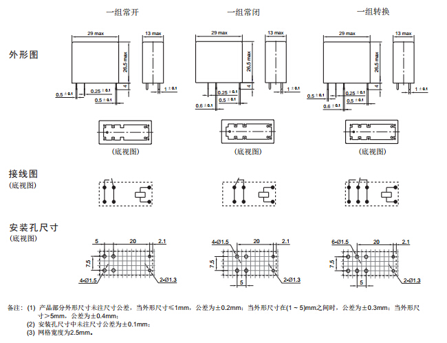 · 具有一組常開、轉(zhuǎn)換、常閉觸點(diǎn)形式
