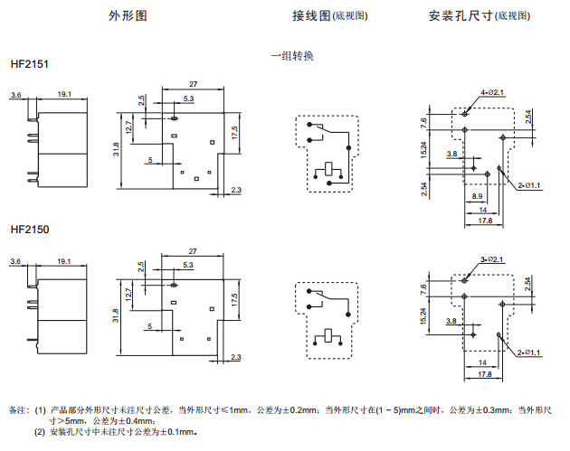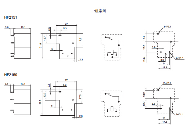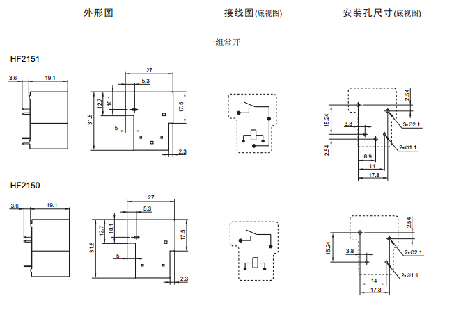 · 具有一組常開、常閉、轉(zhuǎn)換觸點(diǎn)形式