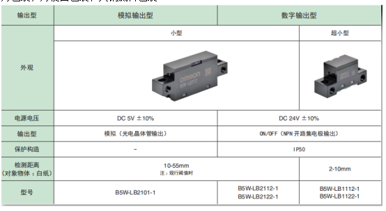 歐姆龍B5W-LB限定反射型傳感器輸出方式可分?jǐn)?shù)字信號(hào)輸出和模擬信號(hào)輸出兩種,其中數(shù)字信號(hào)輸出的傳感器可通過24V電源直接連接PLC等,便于使用。而模擬信號(hào)輸出的傳感器可直接連接到微控制器的A/D輸入端子,適用于需... [查看詳細(xì)]