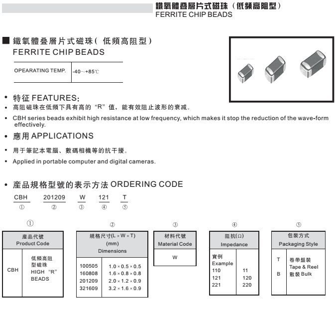 鐵氧體疊層片式磁珠(CBH);