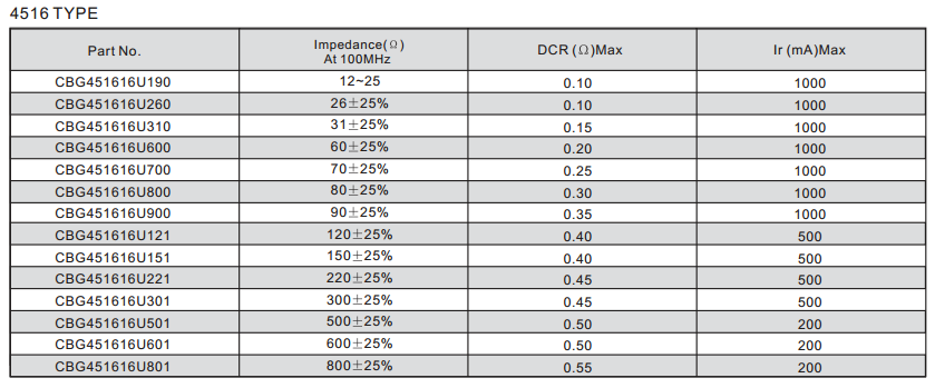 CBG451616U300T鐵氧體疊層片式磁珠