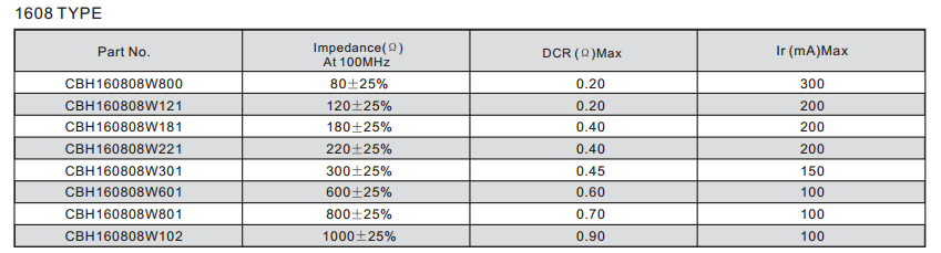 CBH160808W800低頻高阻型磁珠