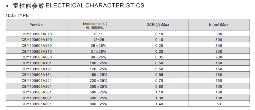 CBY1005005A070尖峰型磁珠