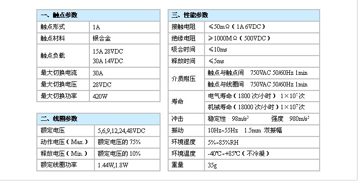 產(chǎn)品說明:產(chǎn)品尺寸(mm):28.2×23×29.4 觸點容量:30A 14VDC,15A 30VDC 線圈功率(W):1.44W,1.8W 介質(zhì)耐壓(VAC):750VAC