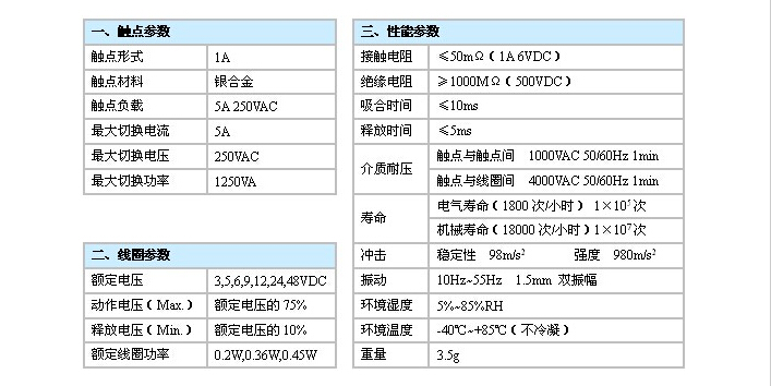 產(chǎn)品說明:產(chǎn)品尺寸(mm):20.4×7.1×14.9 觸點容量:5A 250VAC 線圈功率(W):0.2W 介質(zhì)耐壓(VAC):4000VAC