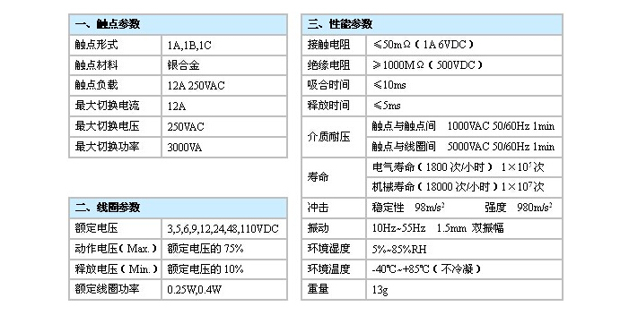 產(chǎn)品說明:產(chǎn)品尺寸(mm):29×12.9×15.6 觸點容量:12A 250VAC 線圈功率(W):0.25W,0.4W 介質(zhì)耐壓(VAC):5000VAC