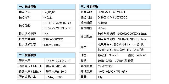 產(chǎn)品說(shuō)明:產(chǎn)品尺寸(mm):29.2×12.8×20.4 觸點(diǎn)容量:1:10A 250VAC/30VDC H:16A 250VAC/30VDC 線圈功率(W):0.54W,0.72W 介質(zhì)耐壓(VAC):5000VAC