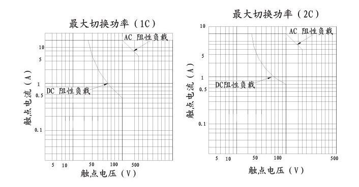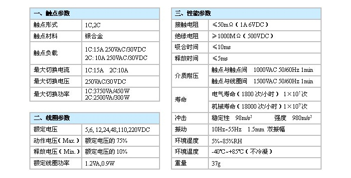 觸點容量:1C:15A 250VAC/30VDC 2C:10A 250VAC/30VDC
