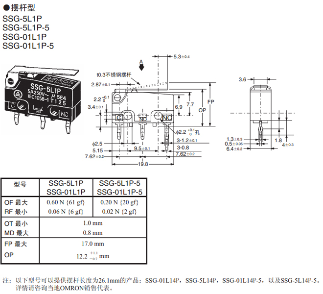 | 驅(qū)動桿 | 端子 | 動作力(OF)最大 | ||
