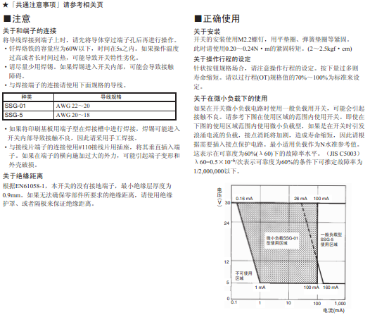 | 接觸電阻 | OF 1.50 N | SSG-5 models: 30mΩ最大 |