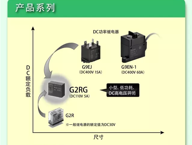 1、G2RG系列:DC110V/5A)小型、低功耗、DC高電壓開閉