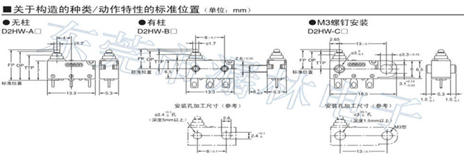 2、密封型超小開關(guān)社內(nèi)最小尺寸微動開關(guān)D2HW-C203ML