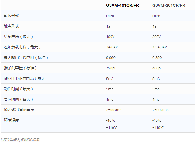 G3VM-201CR/FR:1.5A(A連接), 3A(C連接)