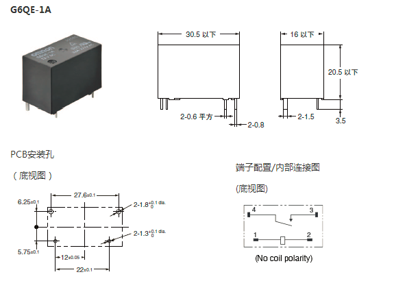 下面是OMRON歐姆龍功率繼電器G6QE系列具體參數(shù)描述: