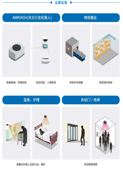 隨著近年勞動力人口的下降,以及新型冠狀病毒肺炎(COVID-19)大流行造成的社交、居家隔離和封閉、擁擠空間的管控,市場對節(jié)約或替代人力的解決方案提出了更高的需求。在此背景下,自主機器人不僅被用于智慧工廠和物流等工業(yè)應用,還越來越多地開始應用于公共設施、醫(yī)院、車站以及商業(yè)綜合體。除了物料運送等簡單的任務,機械手臂等自主機器人還可以執(zhí)行更高級的任務,如組件組裝等。面對這些復雜多變的應用場景,3D視覺模組能夠準確地檢測周圍環(huán)境,以避開人、障礙物和不平整的表面,從而實現(xiàn)機械或設備的自主運行。然而,傳統(tǒng)應用中采用的攝像頭和2D激光雷達(LiDAR)的探測范圍有限,往往需要多個傳感器組合使用,這就帶來了更復雜結構的挑戰(zhàn)。
