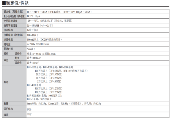 歐姆龍輕觸開(kāi)關(guān)B3F系列,分別有6*6mm方形,12*12mm方形,橫向操作型,鍍金接點(diǎn),實(shí)現(xiàn)輕快觸感及高壽命可達(dá)1000萬(wàn)次。