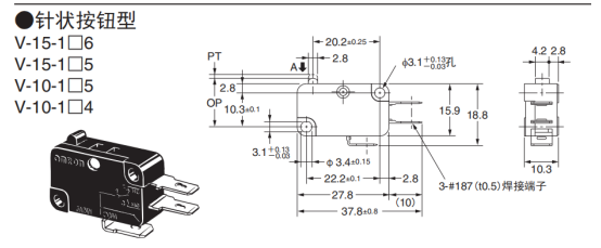 焊槍行業(yè)現(xiàn)目前基本結(jié)構(gòu)都會用到一款微動開關(guān),那么焊槍適用哪種微動開關(guān)呢?15A電流大小的微動開關(guān)作為焊槍把手開關(guān)是非常適用的。我們歐姆龍品牌以V系列開關(guān)為主導(dǎo),推出了焊槍行業(yè)非常適用的開關(guān)V-15-9A5。下面就由潺林電子為大家具體來介紹一下這款歐姆龍V-15-9A5開關(guān)。