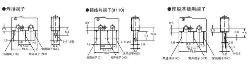 SS系列的開(kāi)關(guān)具有多種焊接方式方便選型和安裝方式: