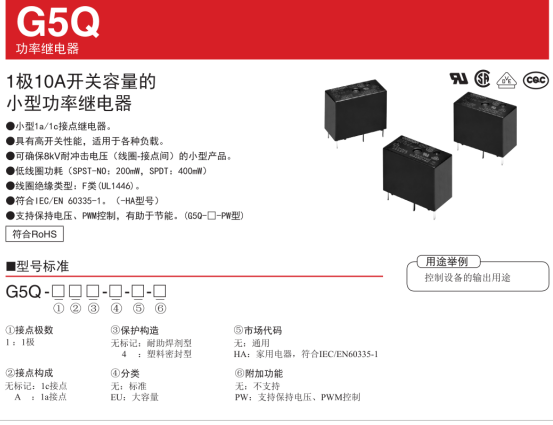 智能插座中重要器件是控制電路通斷的繼電器,而歐姆龍小型功率繼電器型號(hào)G5Q性能正符合智能插座,我們來了解下它的具體特色: