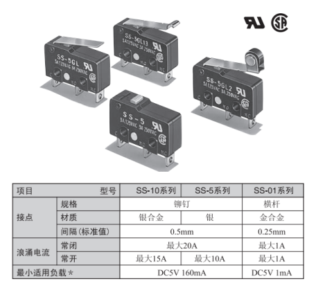 歐姆龍SS系列微動開關(guān)備有0.1A~10.1A型的各個品種,產(chǎn)品規(guī)格齊全,是歐姆龍暢銷的微動開關(guān),高安全而又可靠的超小型基本開關(guān),深受廠家喜愛。