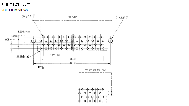 ? 與基板的連接為4列交錯配置(1.27mm x 1.905mm)。