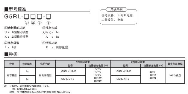 | 標(biāo)準(zhǔn)型 | 印刷基板用端子 | SPST-NO(1a) | 耐助焊劑型 | G5RL-1A-LN | DC5V, DC12V, DC24V | 100個(gè)/托盤(pán) |