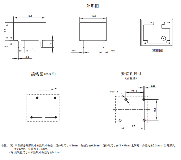 · 外形尺寸:(18.4 x 15.2 x 10.2) mm